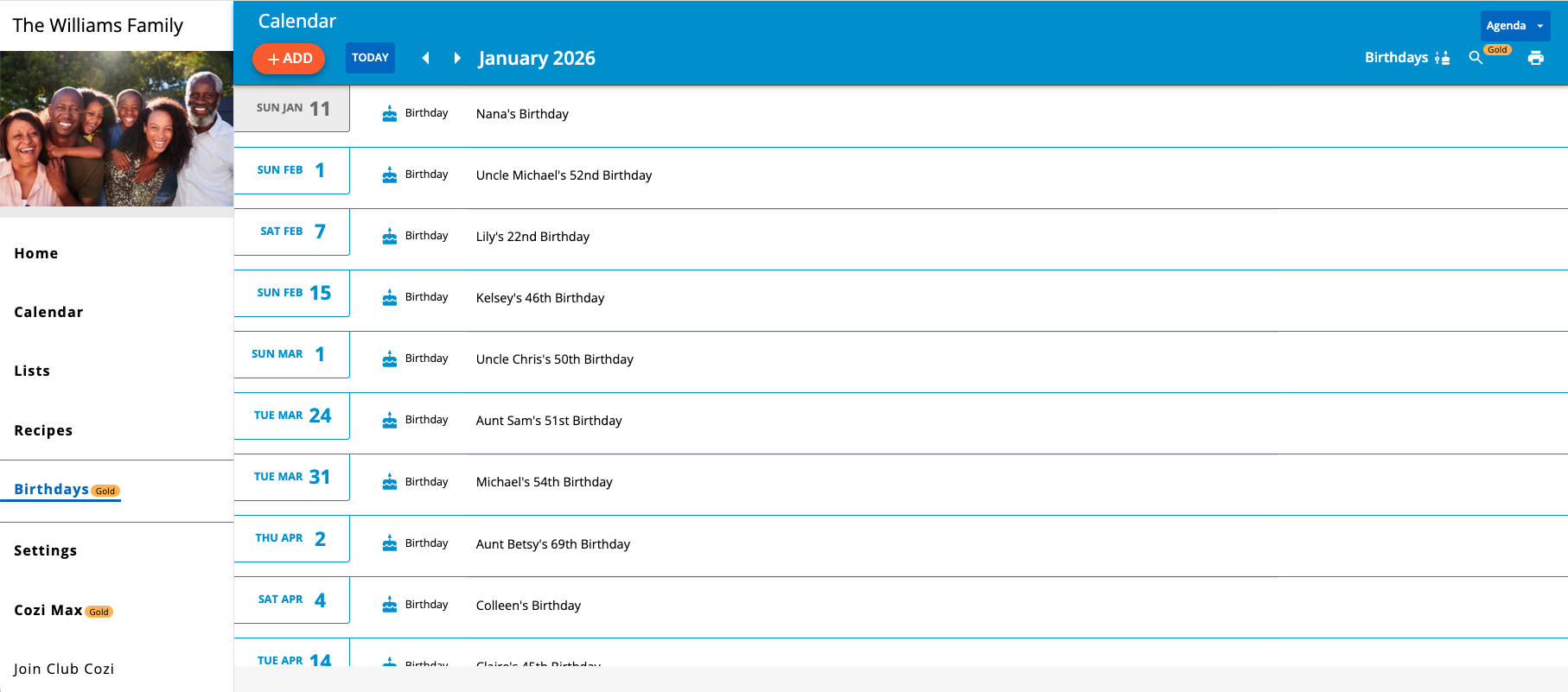• From Cozi Families